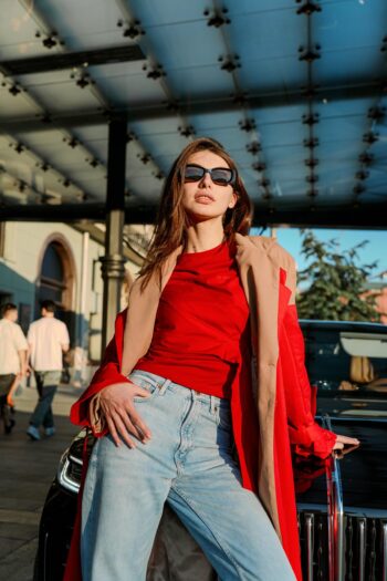 Цвет: Основной цвет: насыщенный красный. Дополнительный цвет: бежево-карамельный (песочный / тёплый нюд)