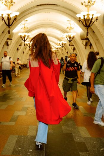 Чёткие, симметричные линии и открытые разрезы на рукавах делают образ динамичным и добавляют элемент провокации. Архитектурный крой выигрышно подчеркнет любую фигуру и силуэт. Пояс выделит линию талии и позволяет добавить игры в образ: носить пальто расслабленным, как строгое графичное полотно или затянуть и подчеркнуть фигуру, превращая образ в скульптуру. Здесь соединился советский стиль и восточная динамика. Это не просто верхняя одежда — это манифест, который утверждает личность и подчёркивает уверенность.